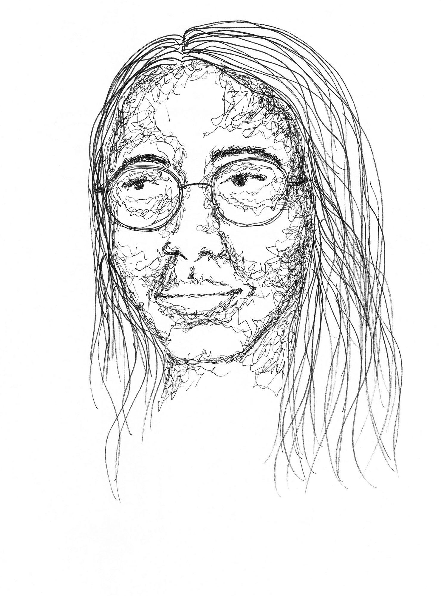 I'm Nat, I'm from London, I make art. That's a self portrait. I have new glasses now.